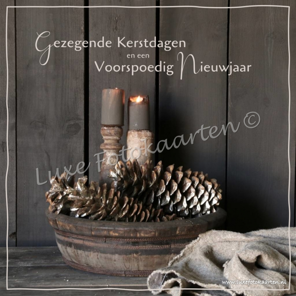 Gezegende Kerst - Bak met dennenappels en kleed